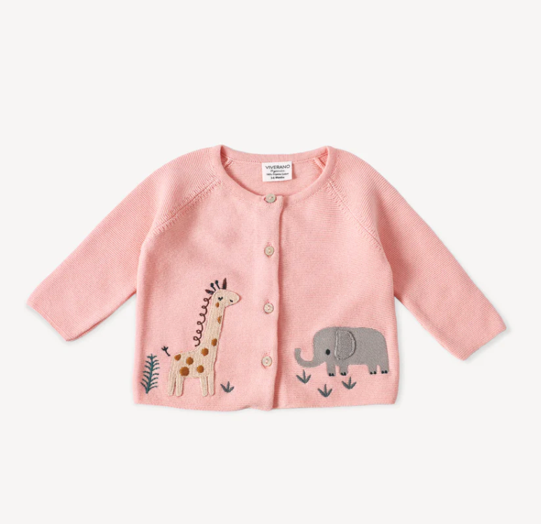 This Animal Safari Embroidered Sweater is ethically crafted in India. Made of all-season, lightweight and breathable organic cotton it is eco-friendly, chemical free and non-toxic, perfect for baby's delicate skin.