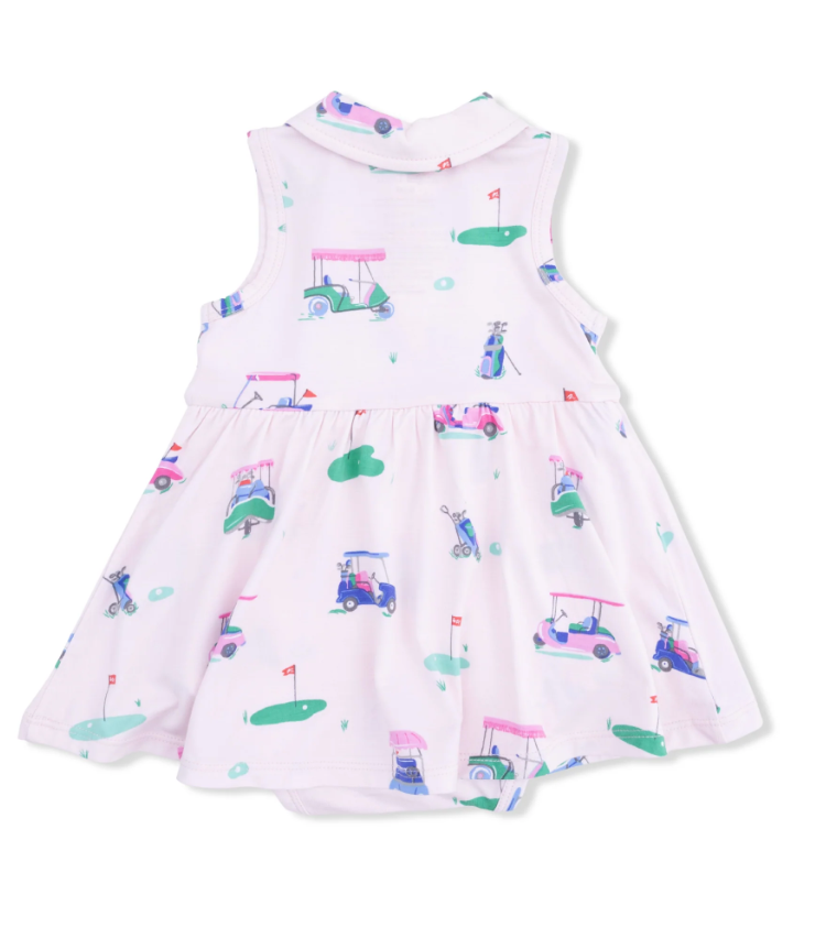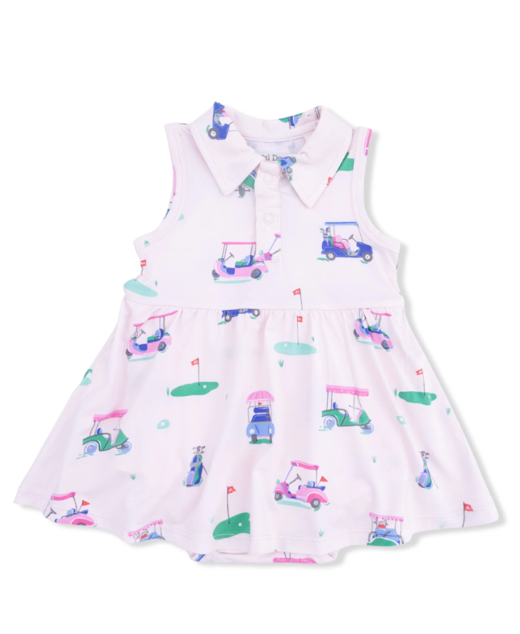 A classic sporty look made just for little ones. This tennis bodysuit dress with golf print is crafted from ultra-soft Viscose from Bamboo for breathable, all-day comfort. Finished with a timeless polo neckline and a playful tennis dress silhouette, it’s an easy one-piece for everyday wear. The built in bodysuit keeps everything in place during play.