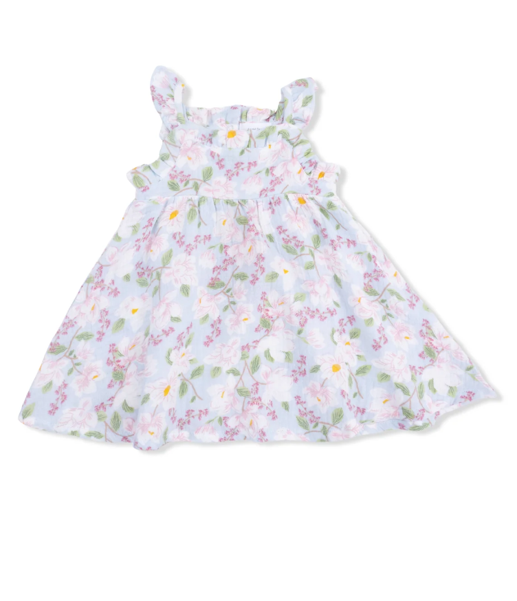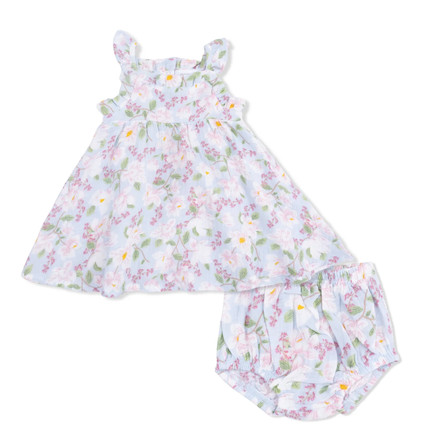 Crafted from soft, breathable organic muslin, this sundress features a comfy fit, and ruffled details for a touch of whimsy. Paired with a matching bloomer, this outfit is perfect for warm days, family outings, or playdates in the sun!