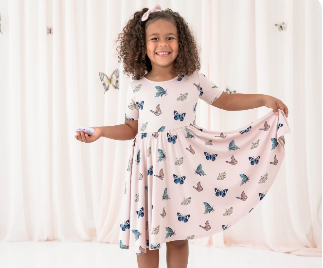 Cut from soft, stretchy bamboo fabric, this twirl dress features a full skirt so your toddler can spin in style. The classic design of the dress can easily be dressed up or down, making it the perfect everyday outfit.