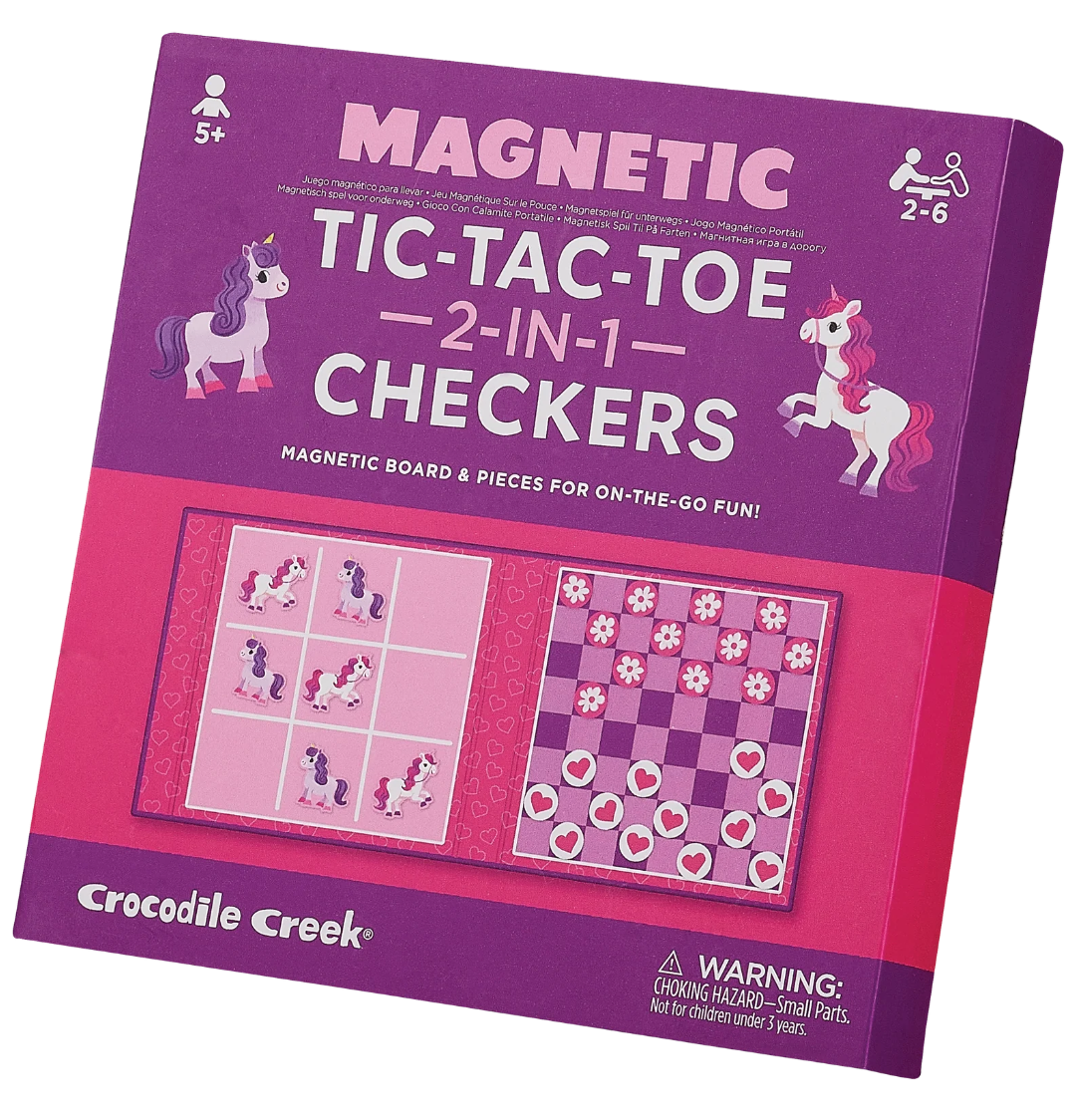 Double the fun with this portable magnetic game set featuring adorable unicorn characters! Perfect for road trips, restaurants, or quiet time at home, this compact game board offers two classic games that kids love. The magnetic pieces stay securely in place, making it ideal for play anywhere.