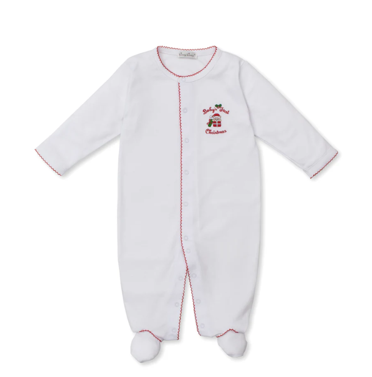 Make Baby's First Christmas even more memorable by dressing them in this ultra-soft footie. Made from the softest Pima cotton and finished with delicate scalloped edges and themed embroidery. Snaps from neckline to feet,