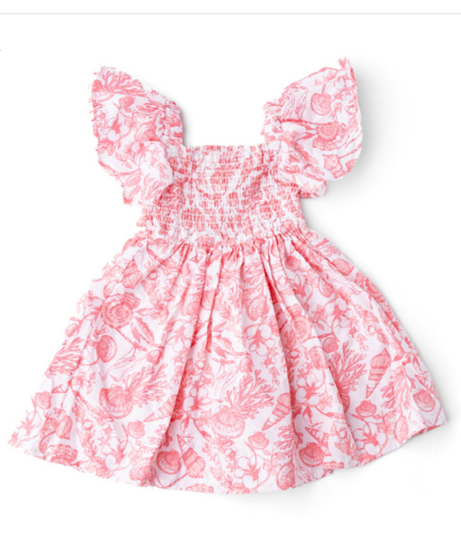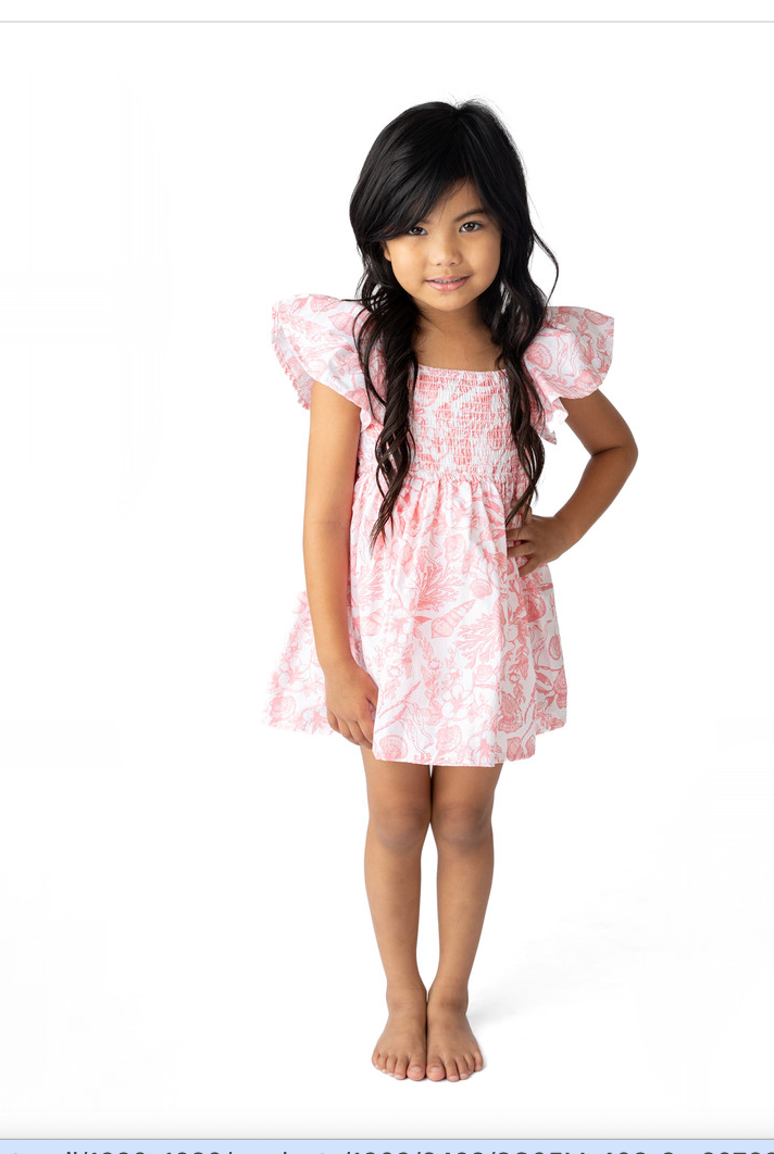 The Seaside Toile Girls Cotton Smocked Dress is perfect for sunny days or special occasions. It features flutter sleeves and delicate smocked detailing, creating a feminine and playful look. Made from 100% cotton, it is soft, breathable, and comfortable for all-day wear. This dress combines style and comfort effortlessly.
