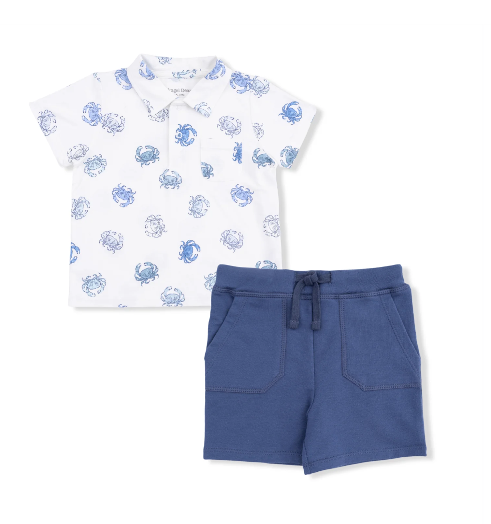 Your little one will be perfectly dressed for playdates, park adventures, or relaxed days at home in this polo and short set. The top is made from soft viscose from bamboo for breathable comfort, while the bottoms are crafted from cozy organic French terry with a drawstring waist and functional pockets for all their little treasures.